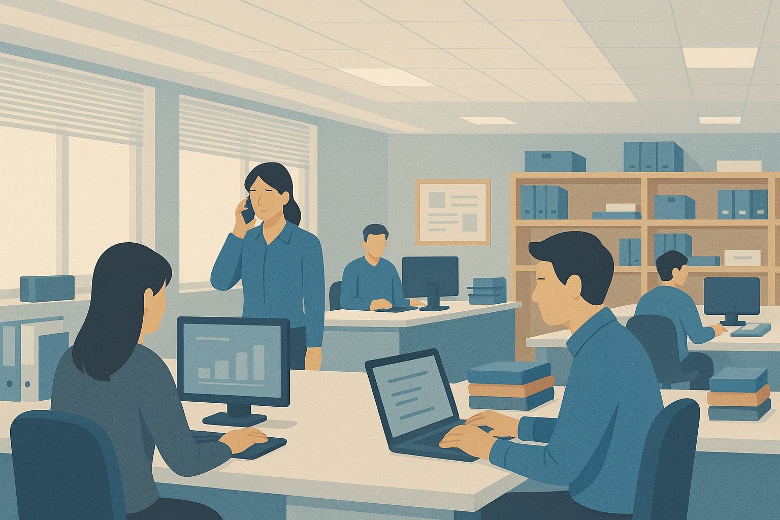 総務・経理・人事・システムが連携し、経営基盤を支える文星閣の中枢。