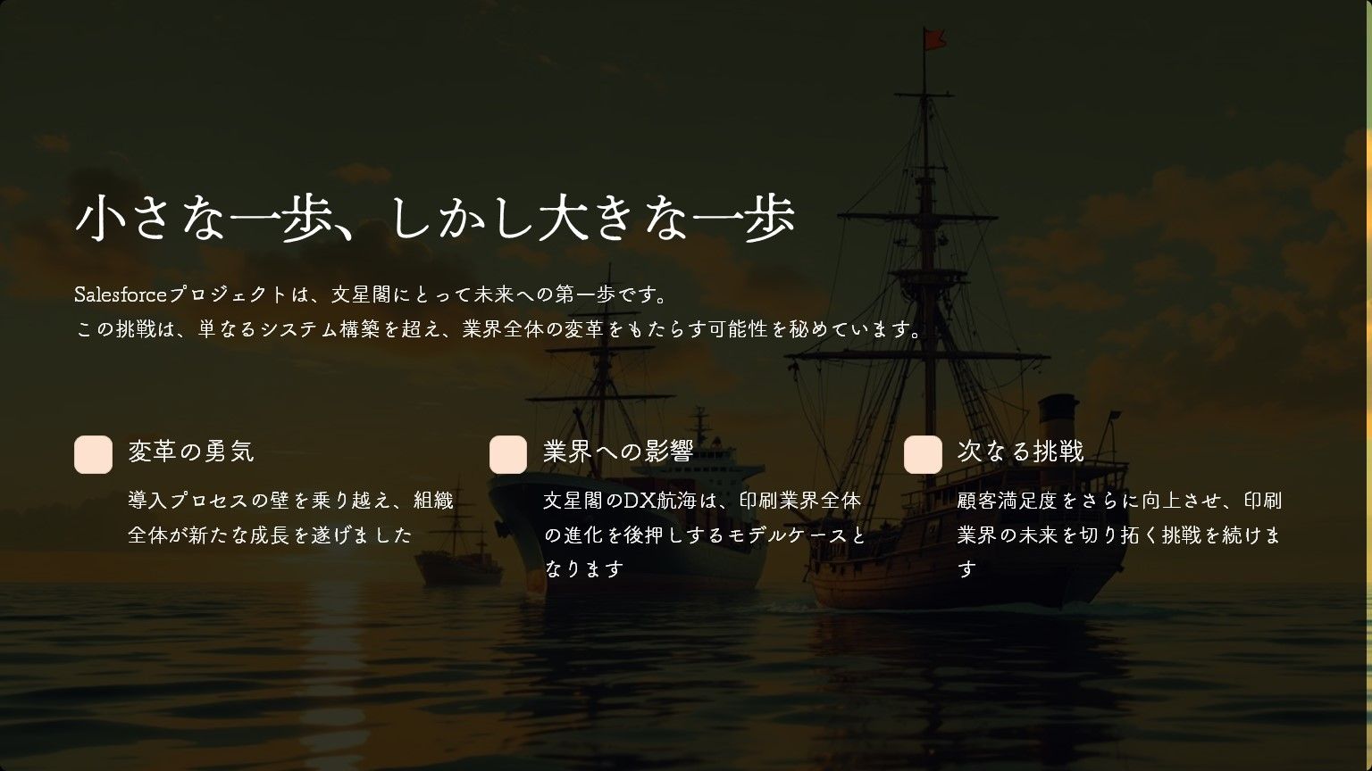 私たちのDX航海は、文星閣の未来、さらには印刷業界全体の未来を変革する可能性を秘めた挑戦の物語です。