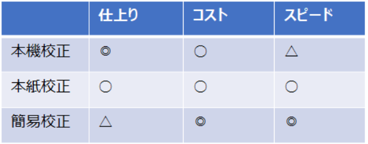 色調要求度が高い印刷物は、本機校正を用いることでより正確な確認が可能になります。印刷物の内容に合わせてより最適な校正方法を用いることで、品質面でのトラブル回避とともに、スムーズな進行にも繋がります。