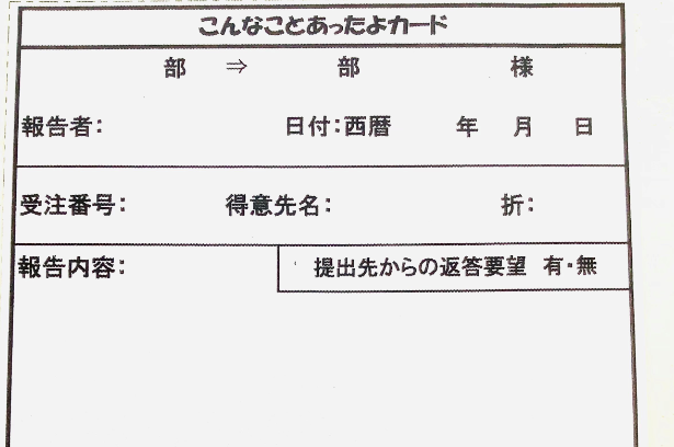 印刷の業界では昔から、「印刷は生き物」という言葉があり、長年の経験をもってしてもその時々の状況によって、想定とは違った結果が生じてしまうことも少なくありません。大きなトラブルに限らず、印刷現場で起こった問題をオペレータだけの経験に留めることなく、お客さまとの距離が最も近いフロントの営業へもしっかりと伝達することで、お客さまの「未来のトラブル」を事前に防ぎ、より安心してお任せいただける関係を築くことができます。文星閣は、印刷現場からの「こんなことあったよカード」を用いて、トラブルを貴重な経験ととらえ、部門を超えた情報共有に取り組んでいます。