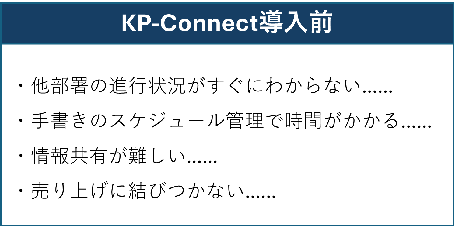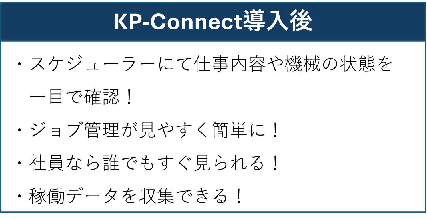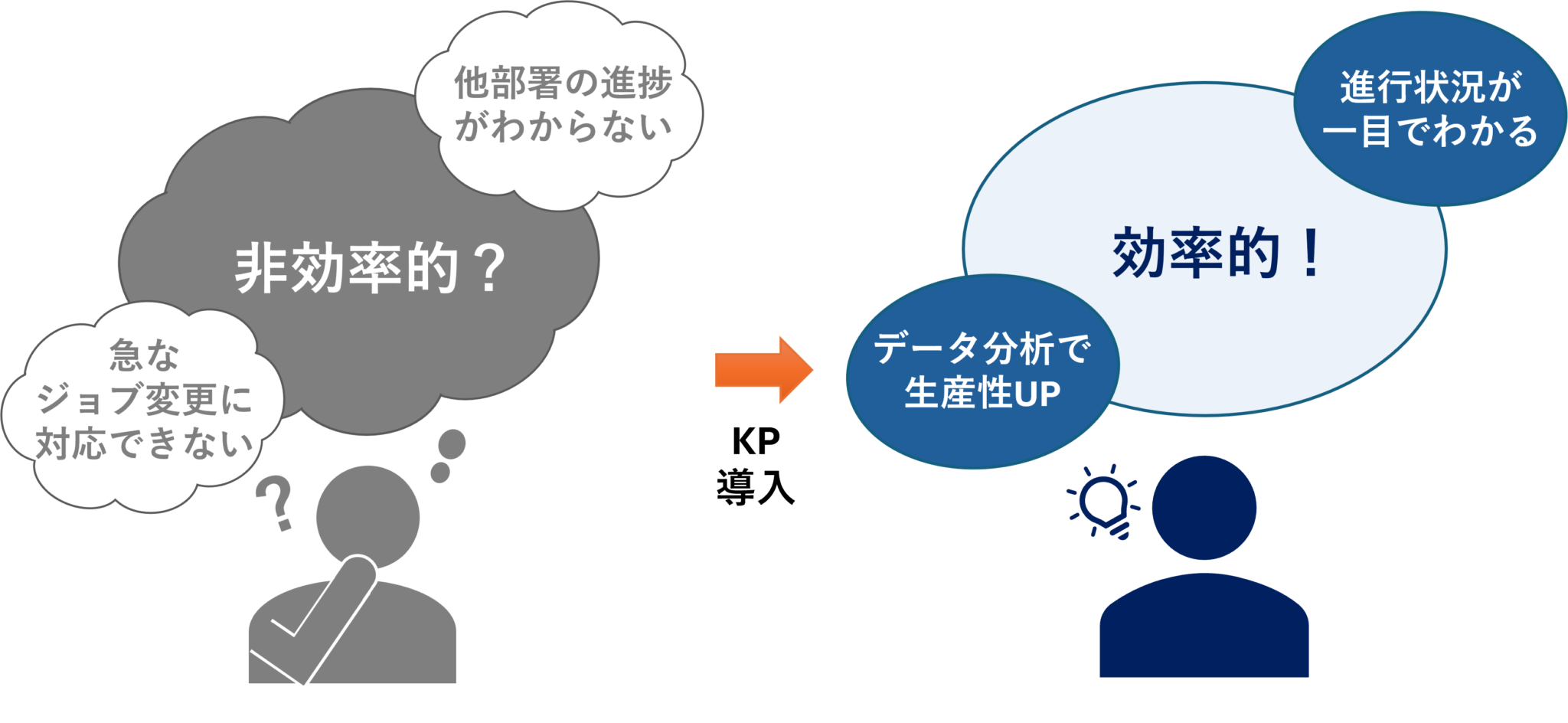 KP導入前では、紙メインでジョブの管理をしていたため、スケジュールの管理に時間がとられていました。