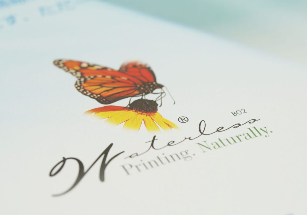 水なし印刷の印刷物には、蝶をあしらった「バタフライロゴ」を印刷物に掲載することができます。