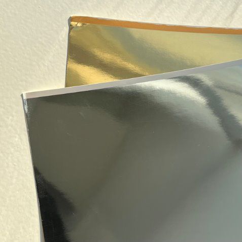アルミを蒸着させたフィルムを表面に張り付けた紙