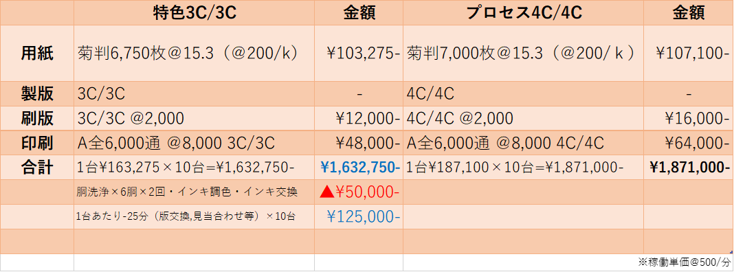 それでは稼働単価という視点から印刷見積を見ていきましょう。
